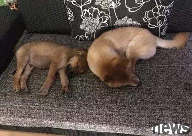 This skinny little yellow dog is the stray dog that the woman brought home, and the Shiba Inu next to it is the dog that the woman has raised since she was a child. When compared with the Shiba Inu, the little yellow dog looks weak, petite and exquisite. At that time, the woman went to attend a temple fair, met this stray dog, and had the idea of taking it back.