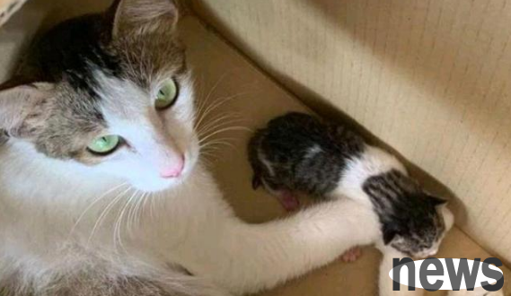After a week of observation, Erin did not continue to bring the kittens back, but stayed in the cardboard box to accompany her children.