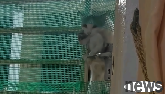 As a result, before Ms. Wang could open the window, the anxious mother cat broke in directly through the screen hole with the kitten in her mouth.