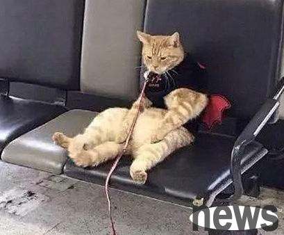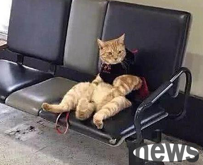 This man had a cat at home, and they were very close to each other. That day he received a call from his girlfriend, asking him to pick him up at the station. He was bored with waiting, so he took the cat with him, thinking he could pass the time.