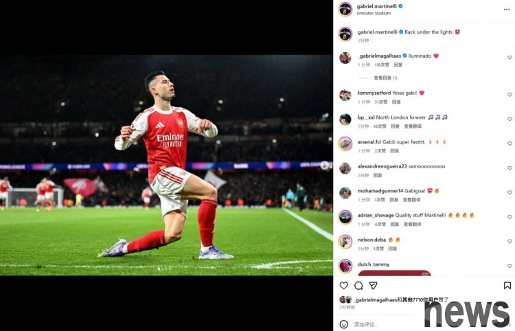 Martinelli scored in this game to seal the victory. After the game, he also posted a photo of celebrating the goal on social media with the text: "Back in the spotlight!"