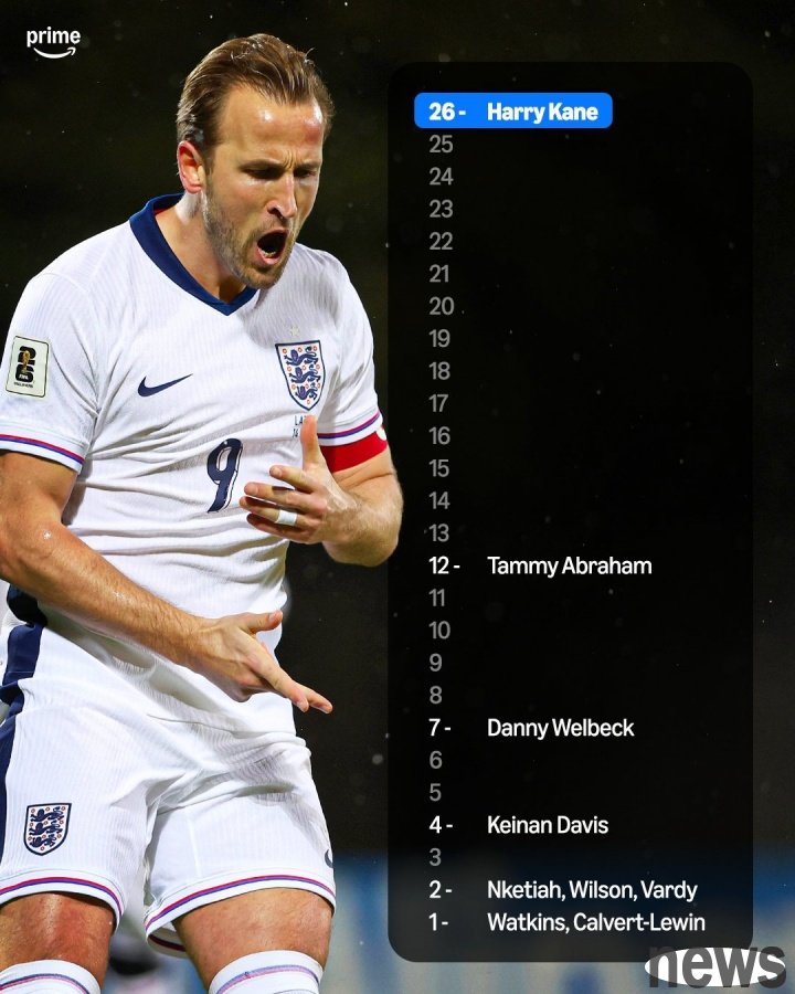 Amazon Prime Video Sport has counted the number of goals scored by English centers playing in the top leagues in various competitions so far this season. Kane leads the way with 26 goals.