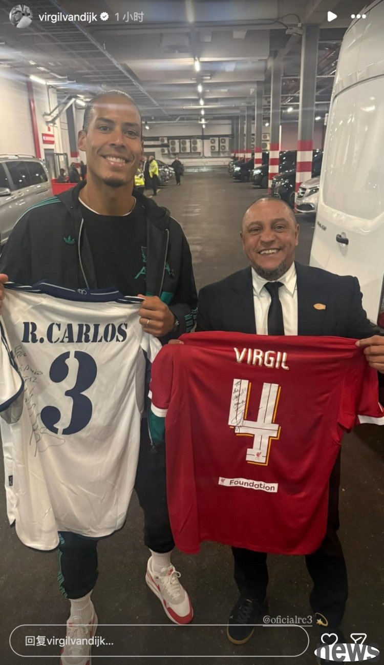 After Liverpool ended its Champions League match with Real Madrid, Reds captain Virgil van Dijk posted a photo on social media with Real Madrid's legendary left-back Roberto Carlos, and the two exchanged jerseys. As the mainstay of Liverpool'...