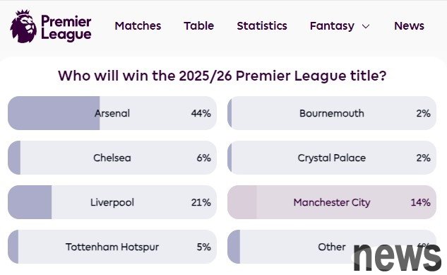 The Premier League official website stated that this may be one of the most exciting championship battles in the history of the Premier League. They launched a fan vote on "Who can win the championship?" The Gunners were the favorite, with their vote rate as high as 44%. The Red Army Manchester City followed closely behind.