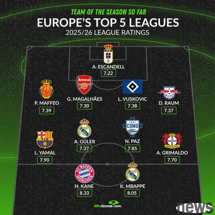 WhoScored has listed the best lineups in the five major leagues so far this season based on the players' average ratings. Mbappe, Kane, and Yamal are on the list. WhoScored has the highest-rated lineup in the five major leagues so far this seaso...